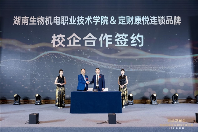 活动现场,两大合作布局为康悦臻品落地提供关键支撑:一方面,与华住集团、慧友酒店集团的合作,直接为“嵌入酒店场景”提供场景资源与运营协同,助力新品牌快速渗透酒店客群,实现“场景即服务”的落地;另一方面,与湖南生物机电职业技术学院、湖南食品药品职业学院的校企合作,则从核心维度筑牢体验根基——依托院校在技术研发、人才培养的优势,为产品供应链的安全与品质提供保障,同时联合制定服务标准化体系,让“小而精”模式下的每一处细节都有专业标准支撑,确保极致体验的稳定落地。