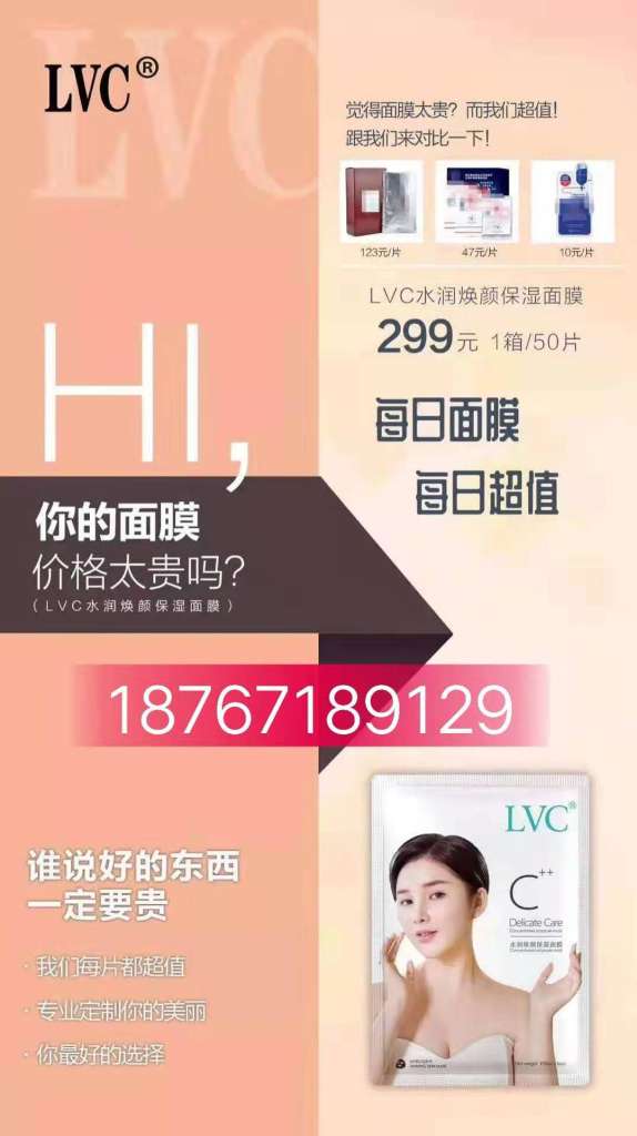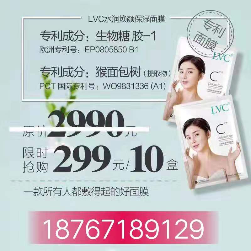 LVC水润焕颜保湿面膜官方总代微信(手机同号):18767189129